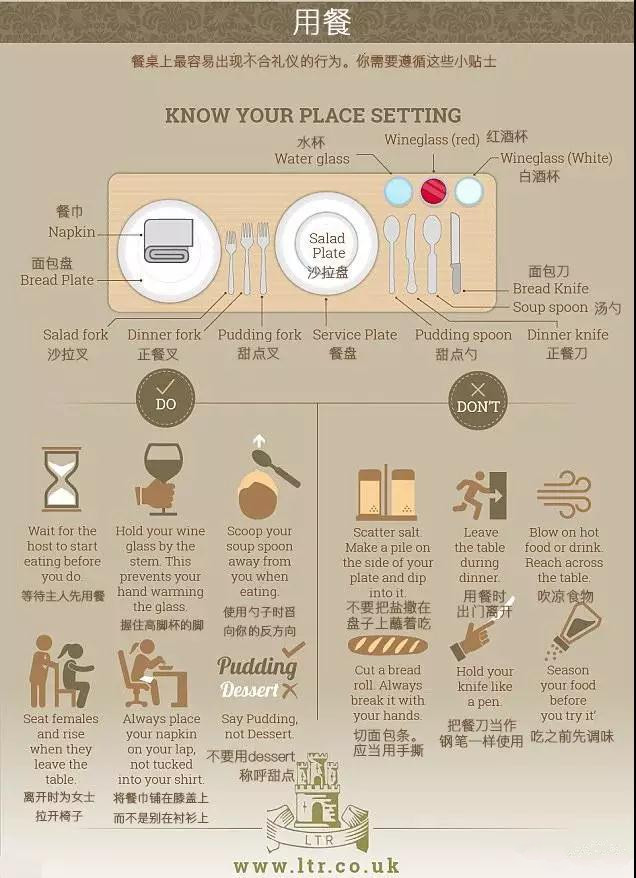 OK,學會跟老外一樣優雅的用餐了嗎?尤其是愛吃西餐的小伙伴們,更要學一學哦!